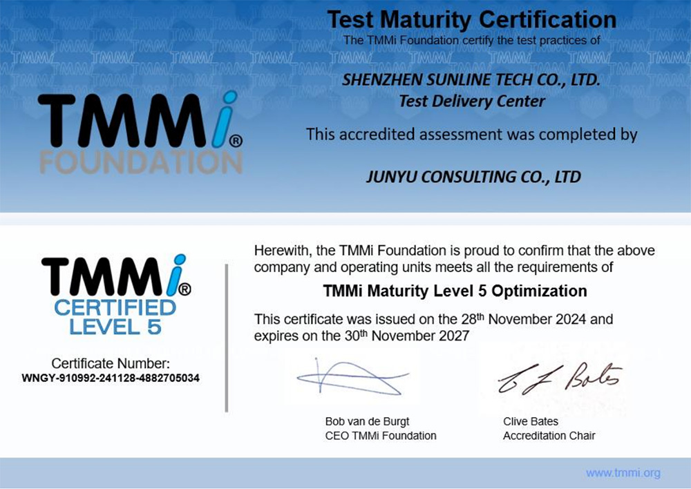 TMMi(Test Maturity Model Integration,測試成熟度模型集成)作為國際公認(rèn)的測試管理體系構(gòu)建和測試過程改進(jìn)權(quán)威評估標(biāo)準(zhǔn),旨在支持世界各地的組織改進(jìn)其軟件和系統(tǒng)測試成熟度,其認(rèn)證體系涵蓋了從需求分析、設(shè)計(jì)開發(fā)、項(xiàng)目管理直至產(chǎn)品交付的全生命周期管理,是企業(yè)軟件產(chǎn)品質(zhì)量管理水平最有力的資質(zhì)證明。TMMi認(rèn)證共分為五個(gè)成熟度級別,其中5級是對測試組織成熟度的最高認(rèn)證。
