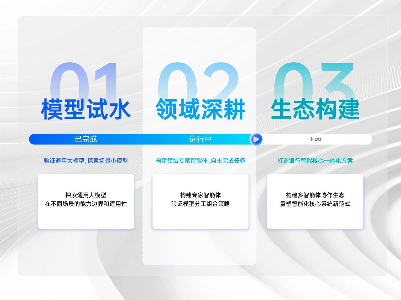 ? 策略:完善“N+M”大模型體系,構建全場景多智能體協(xié)作生態(tài),打造銀行智能化核心系統(tǒng)研發(fā)新范式。