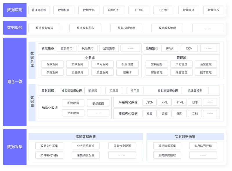 融合數據湖與數據倉庫的優(yōu)勢,形成一體化的數據底層平臺,通過湖倉一體技術,使得數據平臺底層支持多數據類型統(tǒng)一存儲,實現數據在數據湖、數據倉庫之間無縫調度和管理,并實現統(tǒng)一數據服務以支撐數據應用及分析。