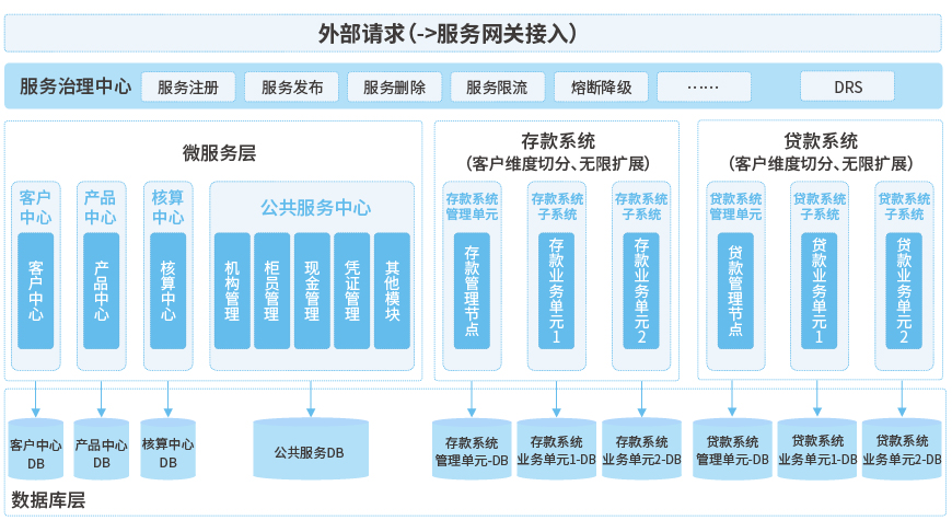 長亮科技結合自身在銀行核心系統(tǒng)領域技術及業(yè)務的洞見,融合領先的業(yè)務和技術架構,推出全國首個“微服務+單元化”架構的新一代分布式銀行核心系統(tǒng)SunLtts V8(簡稱V8),旨在幫助銀行解決集中式的性能瓶頸,提高核心系統(tǒng)的高可用性和動態(tài)擴容能力,以靈活的產(chǎn)品、定價及營銷搶占市場先機,快速實現(xiàn)數(shù)字化轉型。