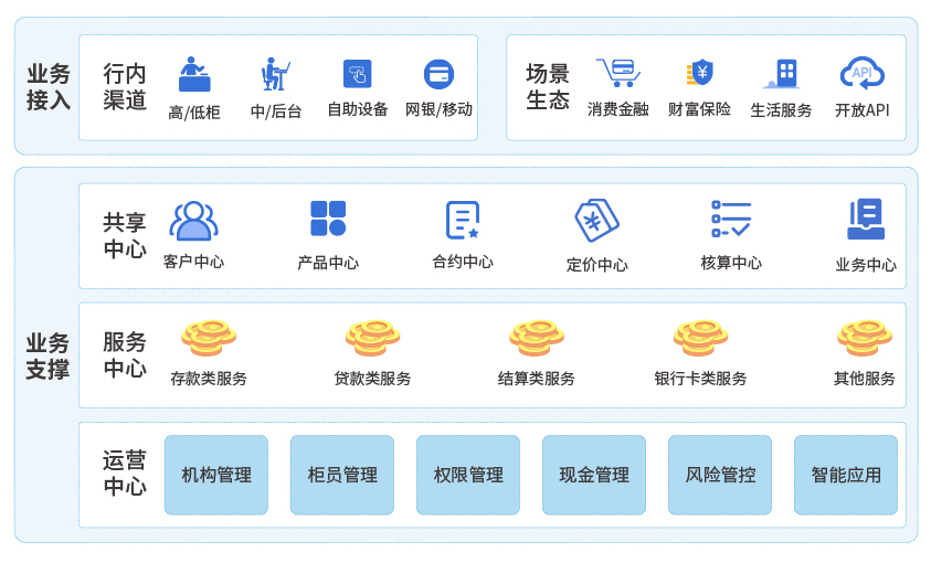 業(yè)務功能更全面:V8遵循以客戶為中心、以產(chǎn)品為主線、以數(shù)據(jù)為驅動的原則進行業(yè)務功能設計,基于組件化的技術方案構建面向銀行不同場景生態(tài)的業(yè)務處理中心。V8不僅擁有完善的多法人體系、靈活的交易與核算分離機制、全面的金融產(chǎn)品工廠、多模式的賬戶體系,還支持個性化的差異定價、線上線下的場景一體化處理,充分展現(xiàn)了以客戶為中心的全方位業(yè)務服務能力,同時為加快銀行數(shù)字化轉型進程、提升開放能力、搭建金融服務生態(tài)圈提供了強有力的交易引擎。