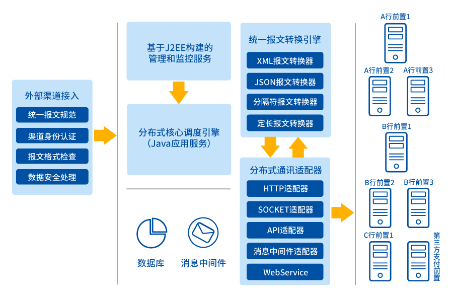 ?接口平臺模塊:為外部系統(tǒng)提供接入服務(wù),包括指令接收、報文校驗、安全檢查、轉(zhuǎn)發(fā)調(diào)度等功能,隨著銀行服務(wù)接口的不斷擴充,接口平臺也會跟著不斷升級;