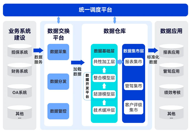 統(tǒng)一數(shù)據(jù)采集、消除數(shù)據(jù)孤島:將分散在擔(dān)保、財(cái)務(wù)、OA等不同系統(tǒng)的內(nèi)部數(shù)據(jù)及外部數(shù)據(jù)進(jìn)行整合,實(shí)現(xiàn) T+1、準(zhǔn)實(shí)時(shí)數(shù)據(jù)采集,形成統(tǒng)一的數(shù)據(jù)視圖,消除數(shù)據(jù)孤島,為龍江農(nóng)擔(dān)提供全面、準(zhǔn)確、及時(shí)的數(shù)據(jù)支持;